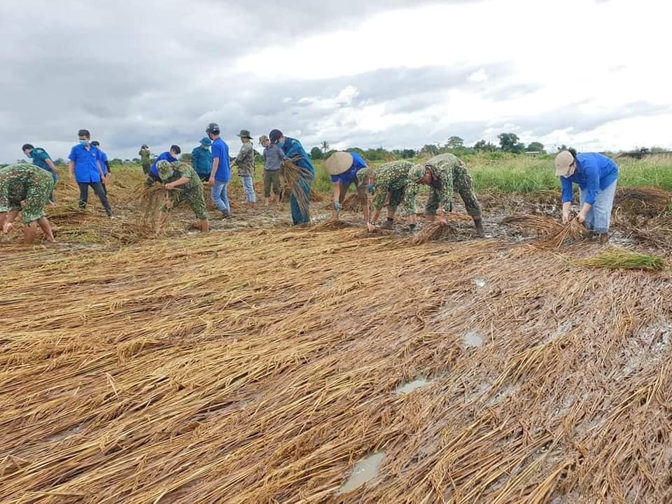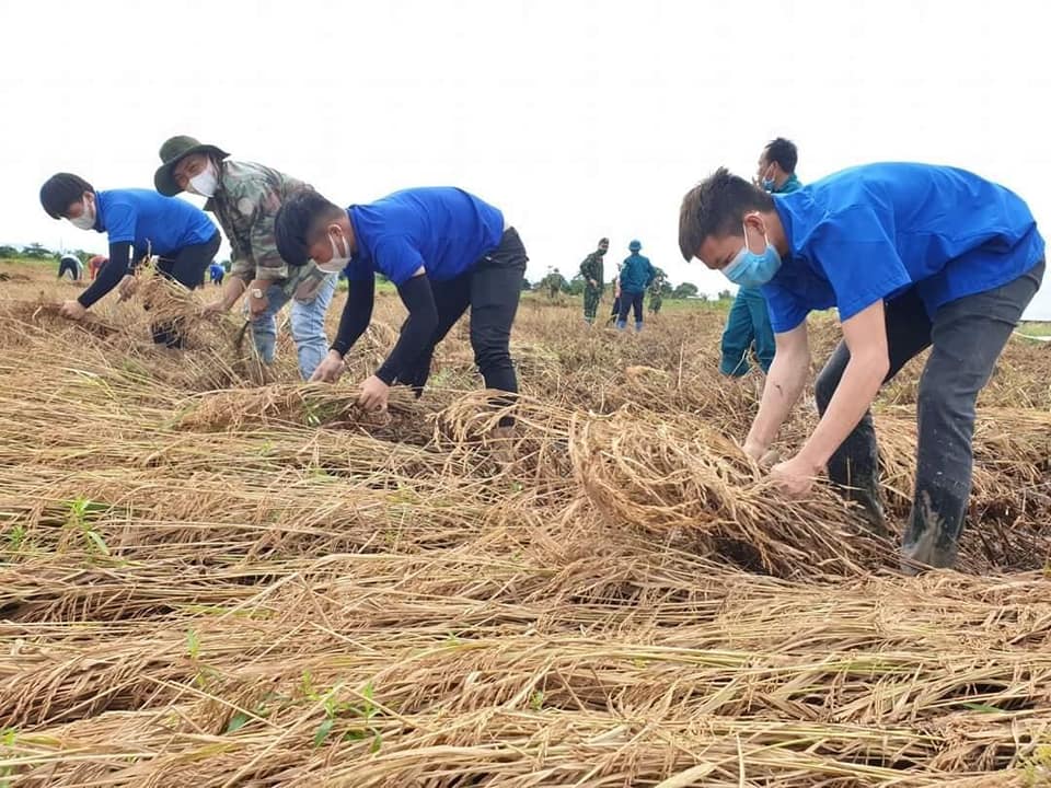 Trước tình hình đó, lực lượng đoàn viên thanh niên tại địa phương đã khẩn trương giúp dân thu hoạch lúa. Đội hình tình nguyện gồm 40 đoàn viên thanh niên phối hợp với lực lượng quân sự và các đoàn thể ra quân hỗ trợ các hộ dân gặt lúa phần diện tích bị ngập nặng. Với sức trẻ và lòng nhiệt huyết, các tình nguyện viên vừa giúp dân gặt lúa, vừa vận chuyển lúa … giúp đỡ người dân trong thời điểm dịch Covid-19 và mưa lũ còn diễn biến phức tạp.