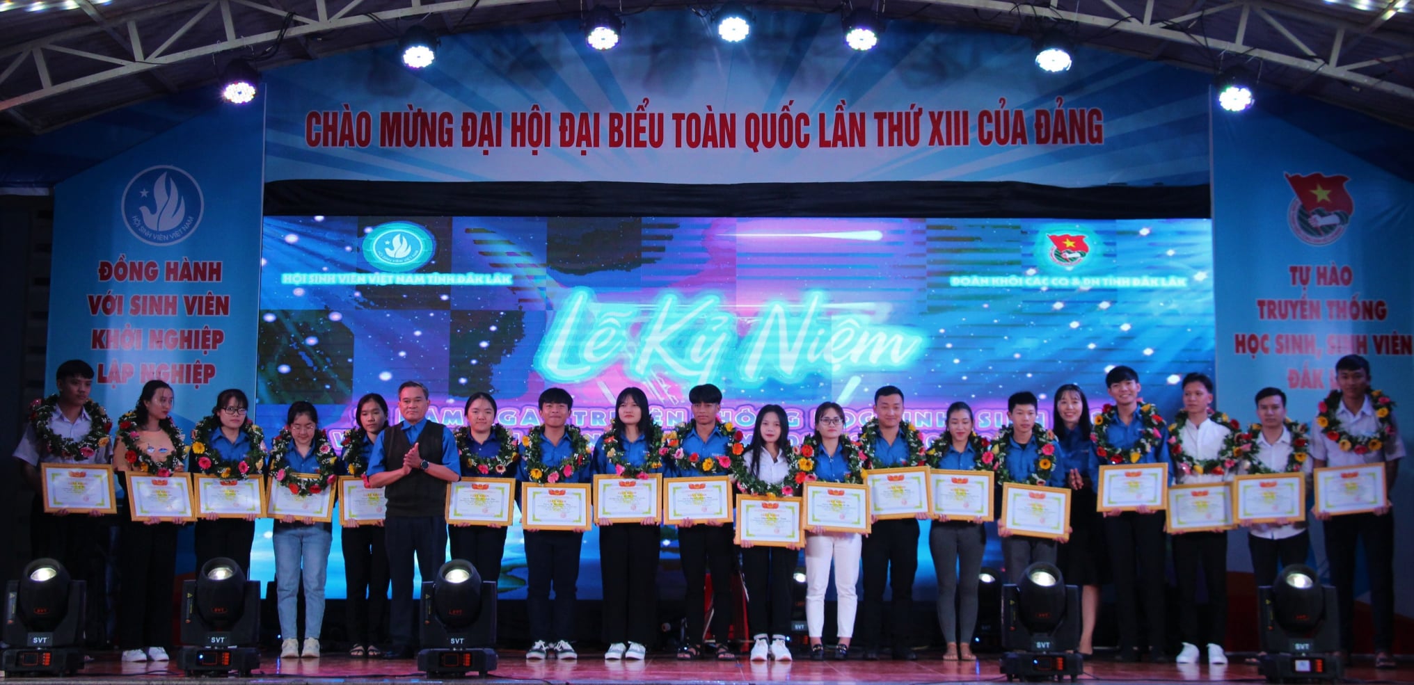 Nhân dịp này, Quỹ “Thắp sáng ước mơ tuổi trẻ Đắk Lắk” dành tặng 27 suất học bổng (1 triệu đồng/suất) cho học sinh sinh viên vượt khó học giỏi; Đoàn khối các Cơ quan và Doanh nghiệp tỉnh tặng 20 suất học bổng “Tiếp sức đến trường” (1 triệu đồng/suất) cho học sinh, sinh viên có hoàn cảnh khó khăn.