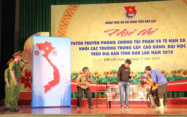 Sáng ngày 10/11, tại Nhà Văn hóa Thanh thiếu nhi tỉnh, Ban Thường vụ Tỉnh Đoàn tổ chức Hội thi tuyên truyền phòng, chống tội phạm và tệ nạn xã hội khối các trường trung cấp, cao đẳng, đại học trên địa bàn tỉnh Đắk Lắk năm 2018 đã thu hút gần 700 đoàn viên, thanh niên đến tham dự cổ vũ.