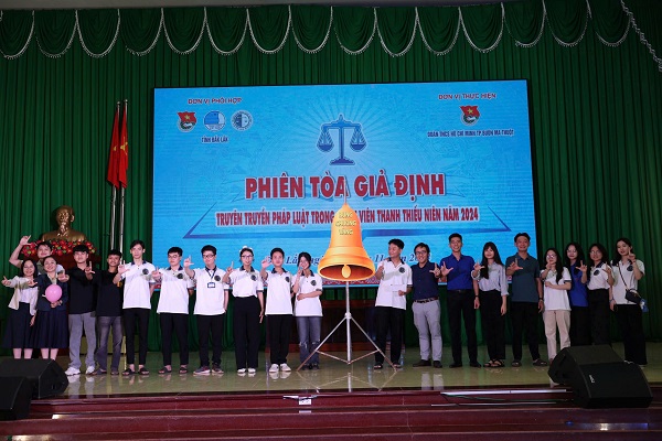 Trong khuôn khổ chương trình diễn ra Hội thi “Rung Chuông vàng” tìm hiểu kiến thức Pháp luật năm 2024 cho đoàn viên, thanh niên, sinh viên với sự tham gia của 05 đội thi đến từ trường Đại học Tây Nguyên, Thành đoàn Buôn Ma Thuột, trường Đại học Y Dược Buôn Ma Thuột, trường Đại học Đông Á phân hiệu Đắk Lắk và trường Đại học Luật Hà Nội phân hiệu Đắk Lắk.