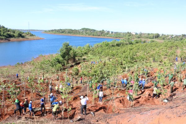 Sau Lễ phát động, các đồng chí lãnh đạo, các đại biểu cùng 120 bạn đoàn viên, thanh niên đã tham gia trồng 250 cây dầu rái và sao đen tại Khu bờ đập Đắk R'Tih, phường Nghĩa Tân (TP. Gia Nghĩa).
