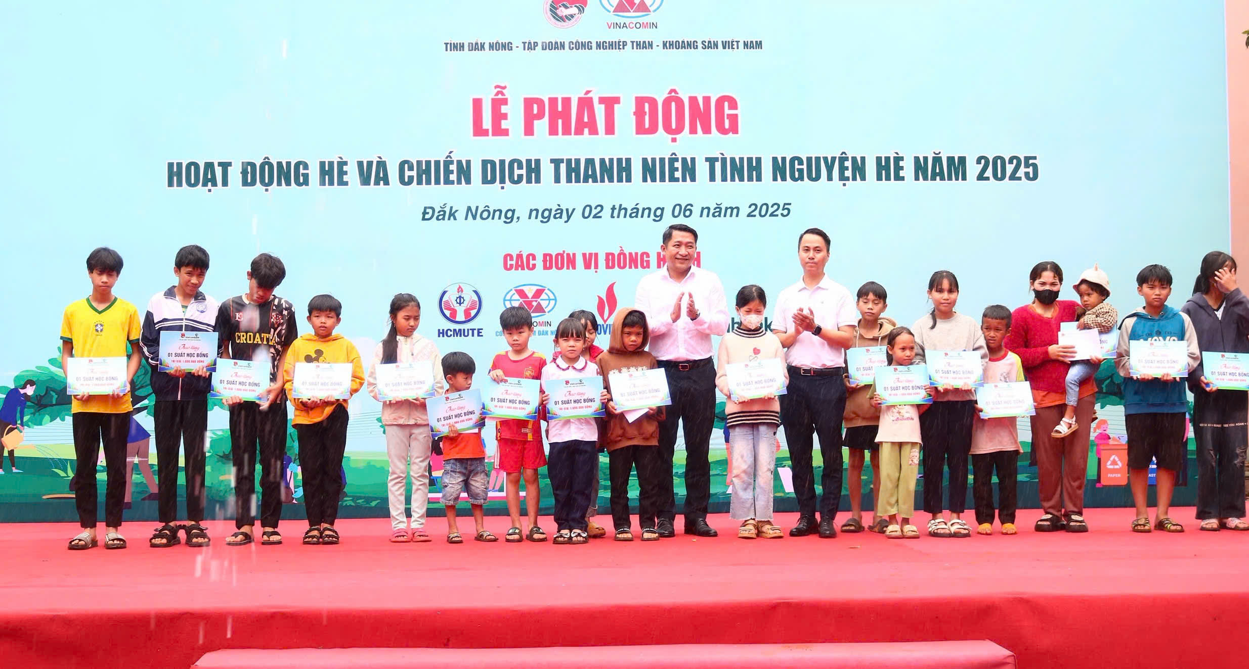 Tại chương trình, Ban Tổ chức đã trao tặng 85 suất quà, 150 suất học bổng với trị giá 1 triệu đồng/suất cho thiếu nhi khó khăn tại huyện Đắk R’lấp, Cư Jút; tặng 6 căn nhà tình nghĩa, 2.000 cây giống, cây sinh kế, thẻ bảo hiểm y tế cùng các phần quà, công trình cộng đồng khác cho thiếu nhi, người dân khó khăn của tỉnh.