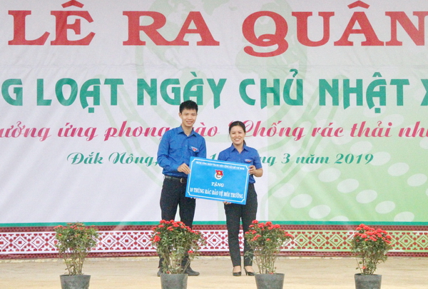 Nhân dịp này, Báo Tuổi trẻ trao tặng công trình nước sạch trị giá 250 triệu đồng cho xã Quảng Tâm (Tuy Đức); Trung ương Đoàn trao tặng 10 thùng đựng rác cho các trường học trên địa bàn thị xã Gia Nghĩa; Đoàn Thanh niên Cục Hậu cần Bộ Công an tặng hệ thống trò chơi liên hoàn ngoài trời trị giá 50 triệu đồng cho Trường Tiểu học Nguyễn Bá Ngọc (Đắk Glong); Đoàn Thanh niên Công ty thăm dò, khai thác dầu khí phía Nam trao tặng 16 bộ phát điện năng lượng mặt trời và 1 bộ lọc nước đầu nguồn trị giá 45 triệu đồng cho xã Quảng Hòa (Đắk Glong).