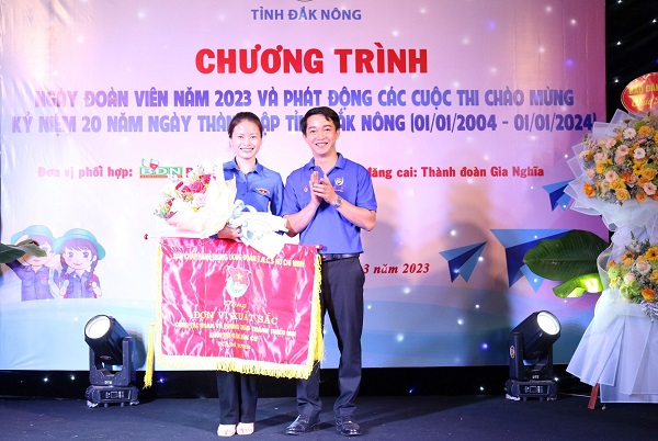Trao cờ thi đua đơn vị xuất sắc trong công tác đoàn và phong trào thanh thiếu nhi khối địa bàn dân cư năm 2022 cho Huyện đoàn Cư Jút