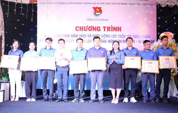 Thừa ủy quyền Trung ương Đoàn, Tỉnh đoàn đã trao cờ thi đua và bằng khen cho các tập thể, cá nhân có thành tích xuất sắc trong công tác Đoàn và phong trào thanh thiếu nhi năm 2022; trao tặng 15 suất quà cho đoàn viên thanh niên trên địa bàn.