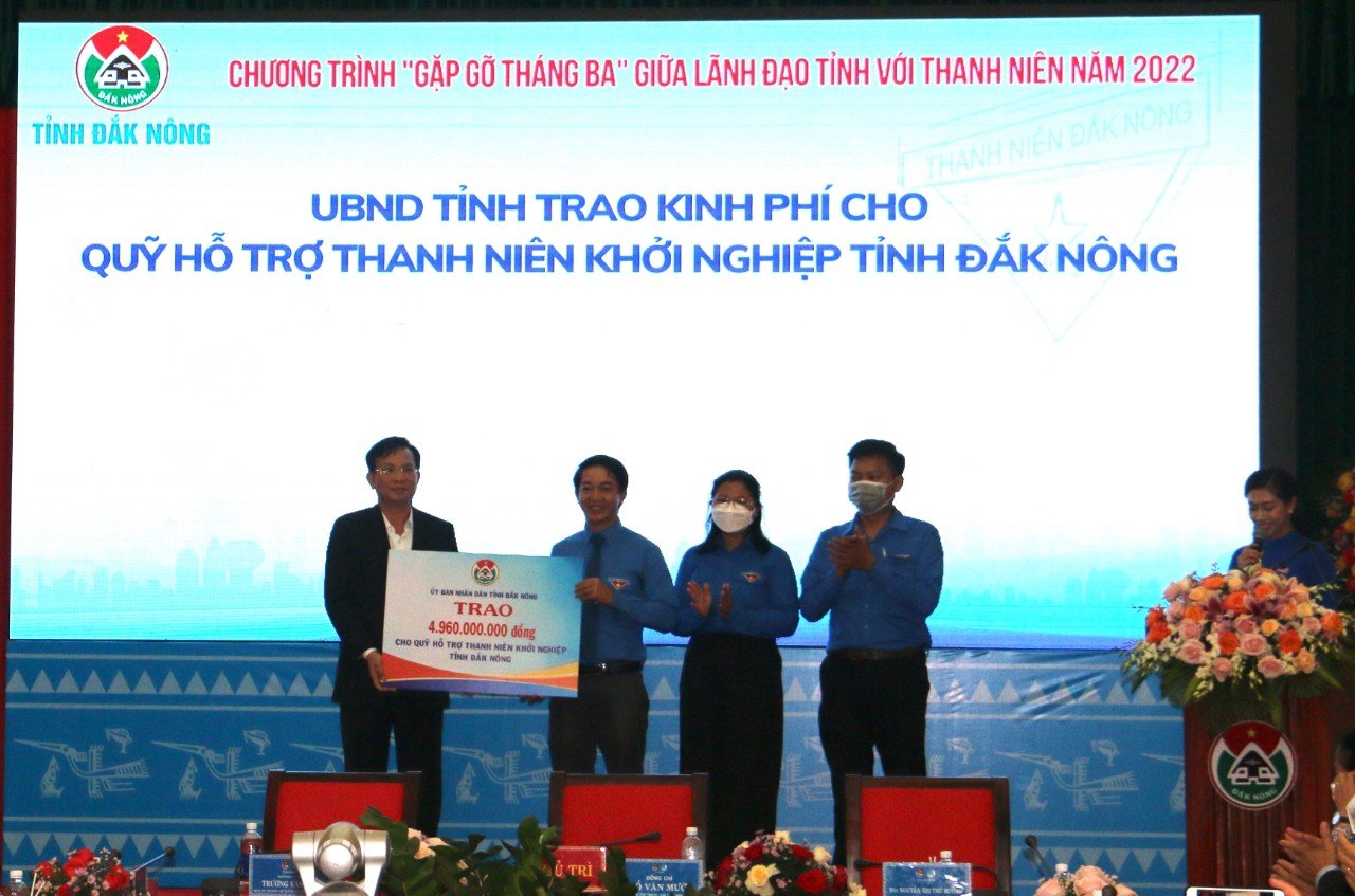 Trong chương trình, UBND tỉnh trao số tiền 4,96 tỷ đồng từ nguồn Chương trình “Khát vọng Đắk Nông” cho Quỹ hỗ trợ thanh niên khởi nghiệp tỉnh Đắk Nông do Ban Thường vụ Tỉnh đoàn Đắk Nông quản lý nâng tổng số vốn của Quỹ lên 5,96 tỷ đồng. Đây là nguồn động viên, quan tâm từ lãnh đạo tỉnh đối với thanh niên, tạo nguồn vốn để hỗ trợ thanh niên khởi nghiệp.