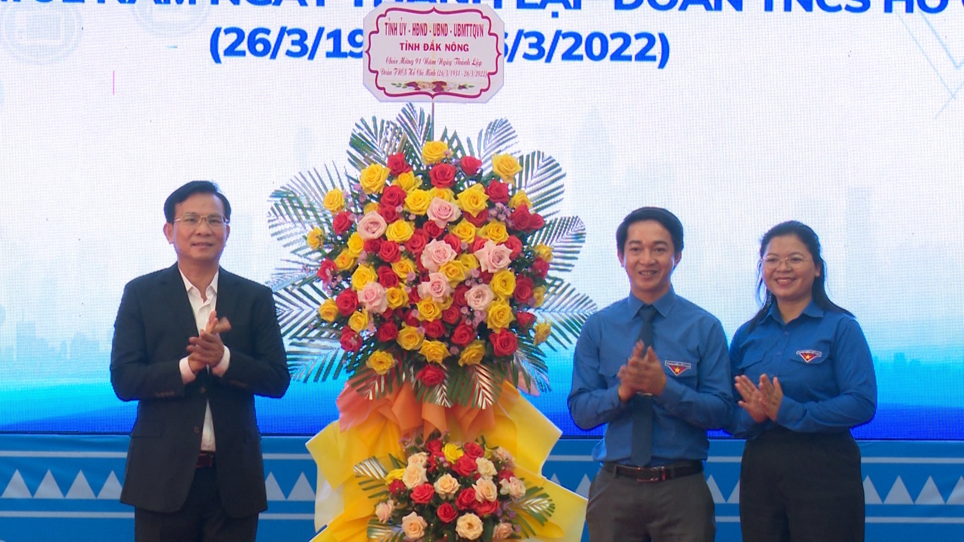 Chủ tịch UBND tỉnh Hồ Văn Mười tặng hoa chúc mừng kỷ niệm 91 năm Ngày thành lập Đoàn