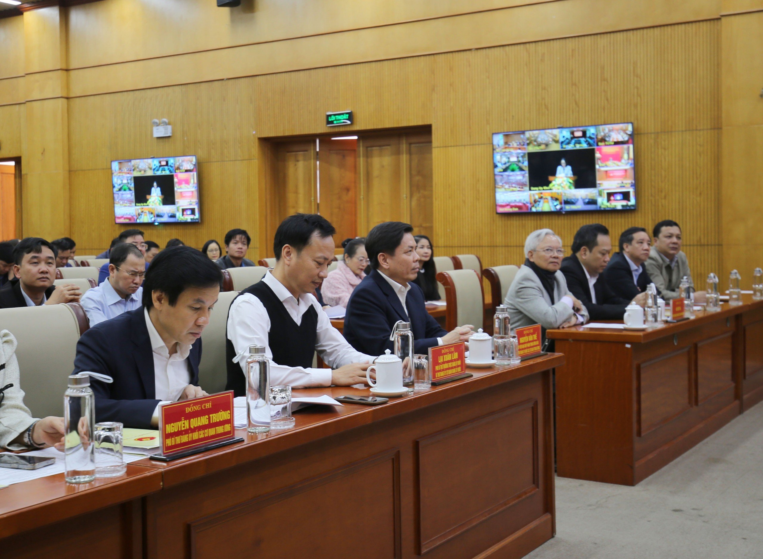 Trung ương Đoàn TNCS Hồ Chí Minh tham gia với 72 điểm cầu kết nối với các đơn vị .Trong ảnh: Đồng chí Nguyễn Ngọc Lương, Bí thư Thường trực TƯ Đoàn, Chủ tịch TƯ Hội LHTN Việt Nam và đồng chí Nguyễn Tường Lâm, Bí thư TƯ Đoàn cùng các đồng chí đảng viên tham dự hội nghị tại điểm cầu trụ sở cơ quan Trung ương Đoàn TNCS Hồ Chí Minh