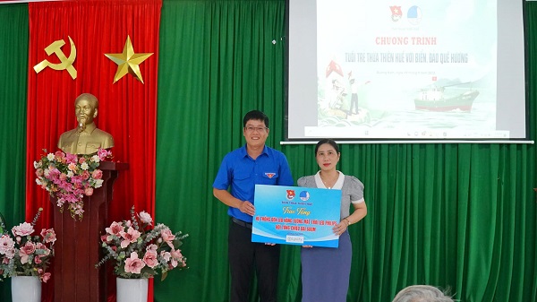 Đặc biệt, trong ngày thứ hai, Đoàn đã đến thăm xã đảo Tam Hải, huyện Núi Thành, tỉnh Quảng Nam. Tại đây đã trao tặng 1.000 lá cờ Tổ quốc cho các ngư dân (do Báo Người Lao động tài trợ), tuyến đường LED năng lượng mặt trời Philips tại bờ kè thôn Bình Trung, xã Tam Hải (do Tập đoàn Signify tài trợ) với chiều dài 680m và hơn 600 hộp sữa. Dịp này, Đoàn đã tổ chức sinh hoạt lửa trại cùng các đoàn viên, thanh niên địa phương với các trò chơi tập thể, giao lưu văn hoá, văn nghệ góp phần thắt chặt mối quan hệ giữa hai đơn vị.