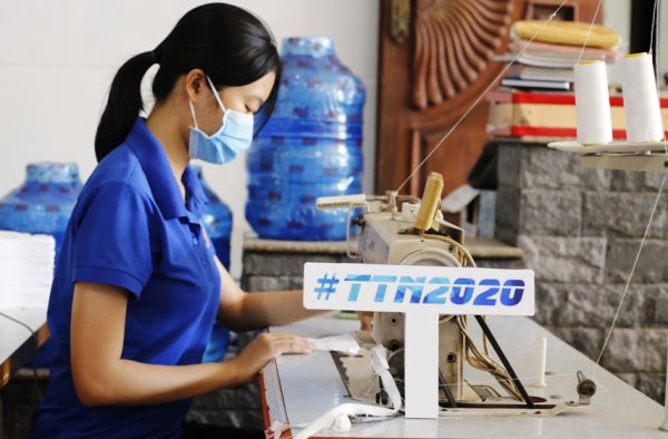 ĐVTN may khẩu trang phát miễn phí cho nhân dân |