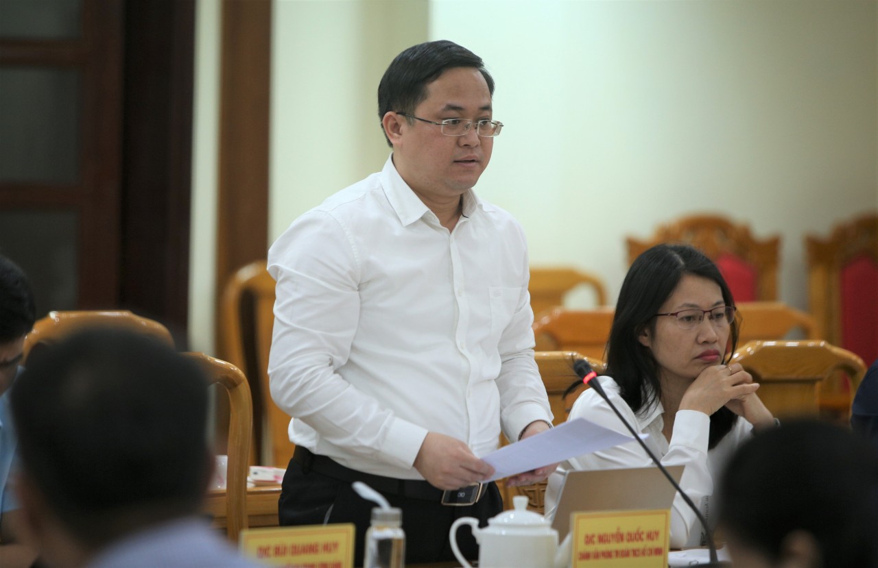 Đồng chí Nguyễn Quốc Huy - Chánh Văn phòng T.Ư Đoàn, thành viên Uỷ ban Quốc gia về Thanh niên Việt Nam trao đổi tại buổi làm việc