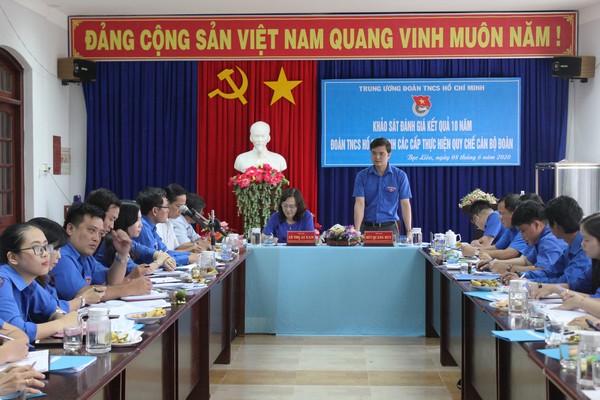 Chiều 8/6, tại Hội trường Ban Dân vận Tỉnh ủy, Đoàn khảo sát do đồng chí Bùi Quang Huy - Bí thư Ban Chấp hành Trung ương Đoàn, Chủ tịch Trung ương Hội Sinh viên Việt Nam làm trưởng đoàn đã có buổi làm việc với lãnh đạo tỉnh, Ban Thường vụ, Ban Chấp hành Tỉnh đoàn Bạc Liêu về việc Khảo sát đánh giá kết quả 10 năm thực hiện Quy chế cán bộ Đoàn (2010 - 2020).