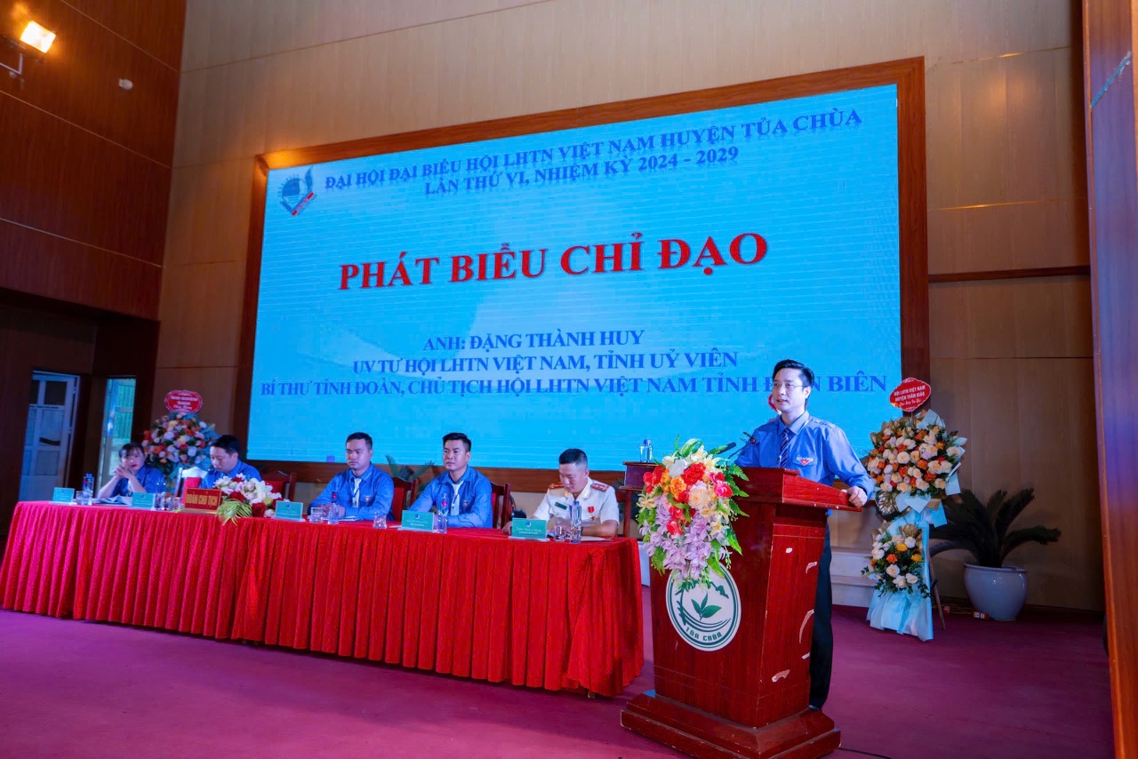 Anh Đặng Thành Huy - Tỉnh ủy viên, Bí thư Tỉnh Đoàn, Chủ tịch Hội LHTN Việt Nam tỉnh phát biểu chỉ đạo tại Đại hội đại biểu Hội LHTN Việt Nam huyện Tủa Chùa