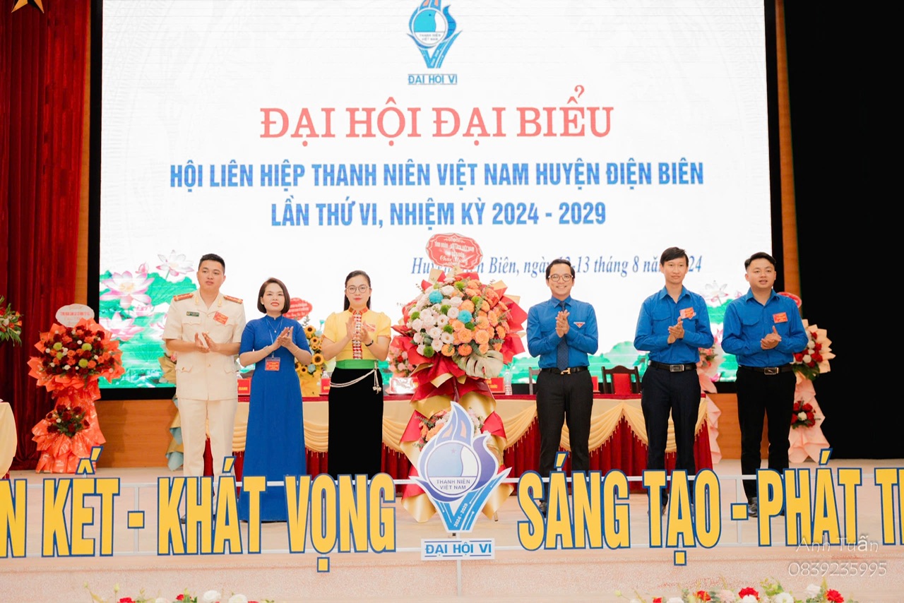 Anh Mùa Chiến Thắng - Phó Bí thư Tỉnh Đoàn, Phó Chủ tịch Hội LHTN Việt Nam tỉnh Thay mặt Ủy ban Hội tỉnh tặng hoa chúc mừng Đại hội đại biểu Hội LHTN Việt Nam huyện Điện Biên