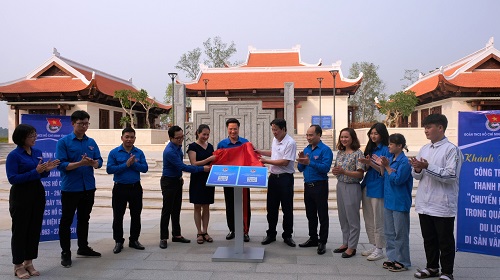 Đồng chí Đặng Thành Huy - UVBCH Trung ương Đoàn, Tỉnh ủy viên, Bí thư Tỉnh đoàn và đồng chí Nguyễn Hoàng Hiệp - Phó Giám đốc Sở Văn hóa, Thể thao và Du lịch khánh thành công trình thanh niên tại Đền thờ Liệt sĩ tại chiến trường Điện Biên Phủ.