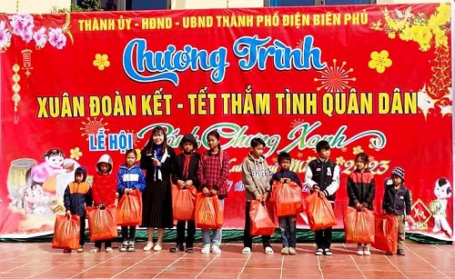 Tại thành phố Điện Biên Phủ, ngày 01/01/2023 Thành đoàn – Hội đồng Đội thành phố đã đến thăm và trao tặng 01 bàn học kèm giá sách, 03 suất quà cho các em nhỏ có hoàn cảnh khó khăn thuộc hộ nghèo tại bản Nà Pen, xã Nà Nhạn. Đồng thời Ban Thường vụ Thành đoàn đã chỉ đạo các cơ sở Đoàn, Hội, Đội tổ chức thăm và tặng gần 100 suất quà bao gồm sách vở, áo ấm, chăn bông, bánh kẹo... cho các em học sinh có hoàn cảnh khó khăn trên địa bàn thành phố; thăm tặng quà cho tân binh lên đường nhập ngũ, gia đình Cựu TNXP có hoàn cảnh khó khăn. Tổng trị giá các suất quà bằng hiện vật và tiền mặt hơn 110 triệu đồng.