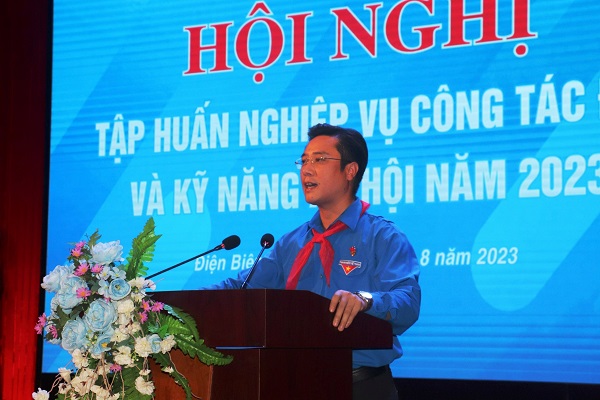 Đồng chí Đặng Thành Huy - Bí thư Tỉnh đoàn, Chủ tịch Hội đồng Đội tỉnh, Trưởng Ban tổ chức Hội nghị tập huấn phát biểu khai mạc