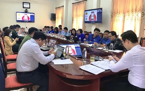 Hội nghị trực tuyến đến điểm cầu các huyện, thị đoàn.