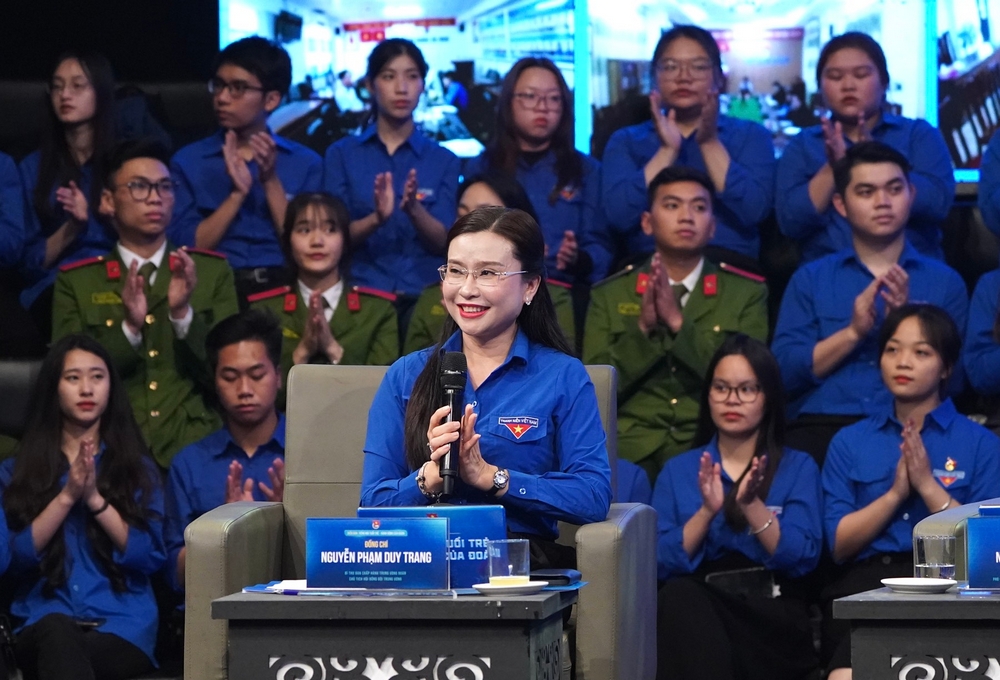 MC Minh Hằng đã chuyển tải câu hỏi được nhiều bạn trẻ quan tâm, đó là những hoạt động của tổ chức Đoàn để phát huy vai trò của thanh niên tham gia thực hiện nhiệm vụ chấn hưng văn hoá và phát triển nền công nghiệp văn hoá trong kỷ nguyên số?