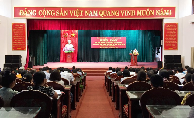 Tại Chương trình diễn đàn, các đại biểu và đoàn viên thanh niên thị xã Nghĩa Lộ đã vinh dự được trực tiếp Giáo sư Hoàng Chí Bảo – Nguyên Ủy viên Hội đồng Lý luận Trung ương, Chuyên gia cao cấp Học viện Chính trị Quốc gia Hồ Chí Minh giảng dạy và nói chuyện. Giáo sư đã truyền tải những nội dung cơ bản về chuyên đề học tập và làm theo tấm gương đạo đức, phong cách Hồ Chí Minh năm 2020, đồng thời đã chia sẻ những câu chuyện về Bác Hồ và những bài học về đạo đức quan trọng trong tư tưởng của Hồ Chí Minh, những tình cảm, mong muốn của Bác Hồ đối với thanh niên.