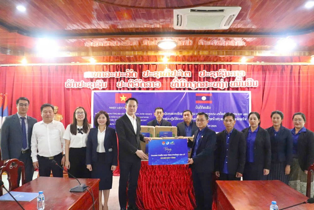 Trong khuôn khổ chương trình làm việc, đoàn công tác Trung ương Hội LHTN Việt Nam đã trao tặng 10 suất học bổng, mỗi suất trị giá 01 triệu Kíp và 01 bộ dụng cụ học tập, 10 chiếc xe đạp, 05 bộ máy tính cho thanh thiếu nhi tỉnh Phông-sa-lỳ thông qua Tỉnh đoàn Phông-sa-lỳ.