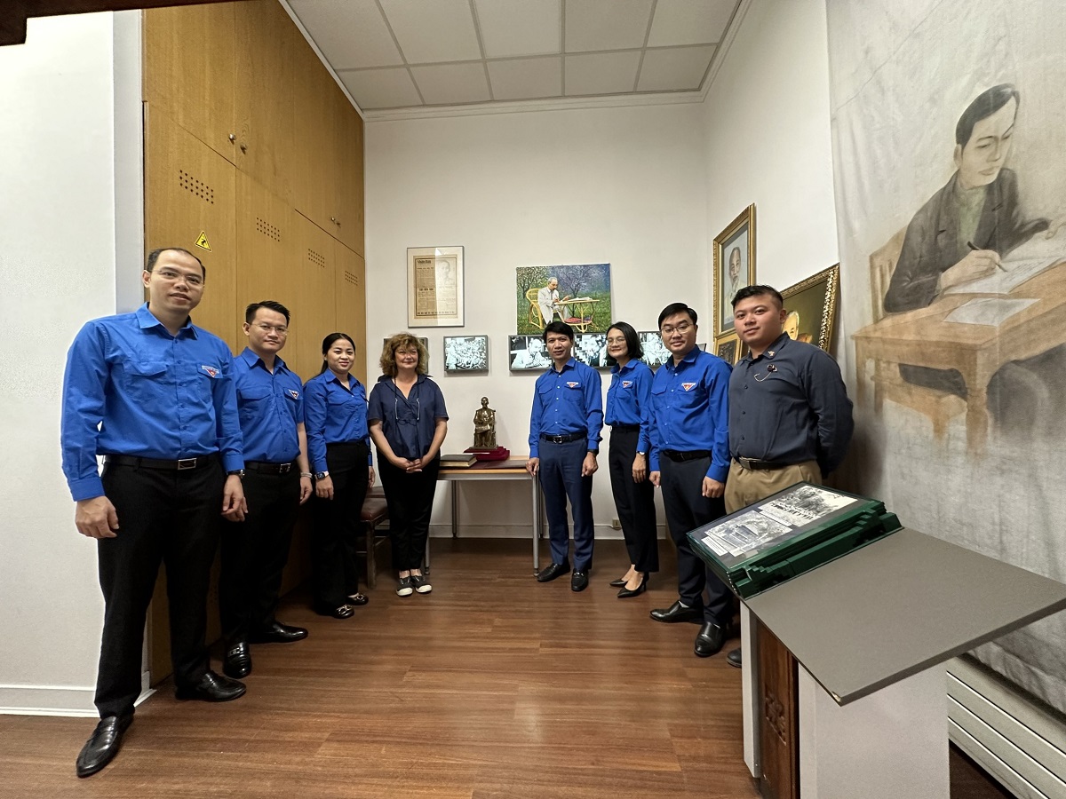 Đồng chí Nguyễn Ngọc Lương, Bí thư Thường trực Trung ương Đoàn, Chủ tịch Hội Liên hiệp Thanh niên Việt Nam cùng đoàn công tác thăm tượng đài Chủ tịch Hồ Chí Minh và Không gian Hồ Chí Minh tại thành phố Montreuil, Cộng hòa Pháp