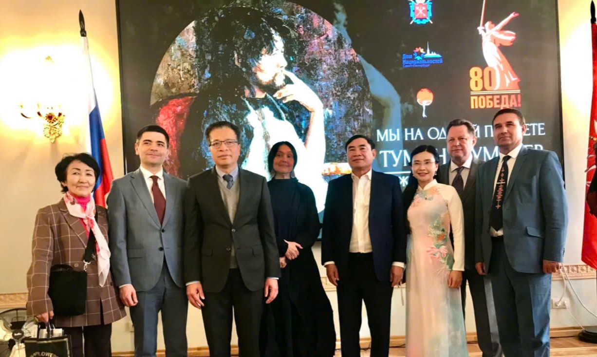 Trong khuôn khổ chuyến thăm và làm việc tại Nga của Trung ương Đoàn TNCS Hồ Chí Minh, chiều 19/5/2025, đoàn công tác tham dự buổi triển lãm tranh của họa sĩ Tuman Zhumabaev với chủ đề “Chúng ta cùng sống trên một hành tinh” tại Nhà Văn hóa các dân tộc; dâng hoa tại Tượng đài Chủ tịch Hồ Chí Minh trên Quảng trường Hồ Chí Minh.