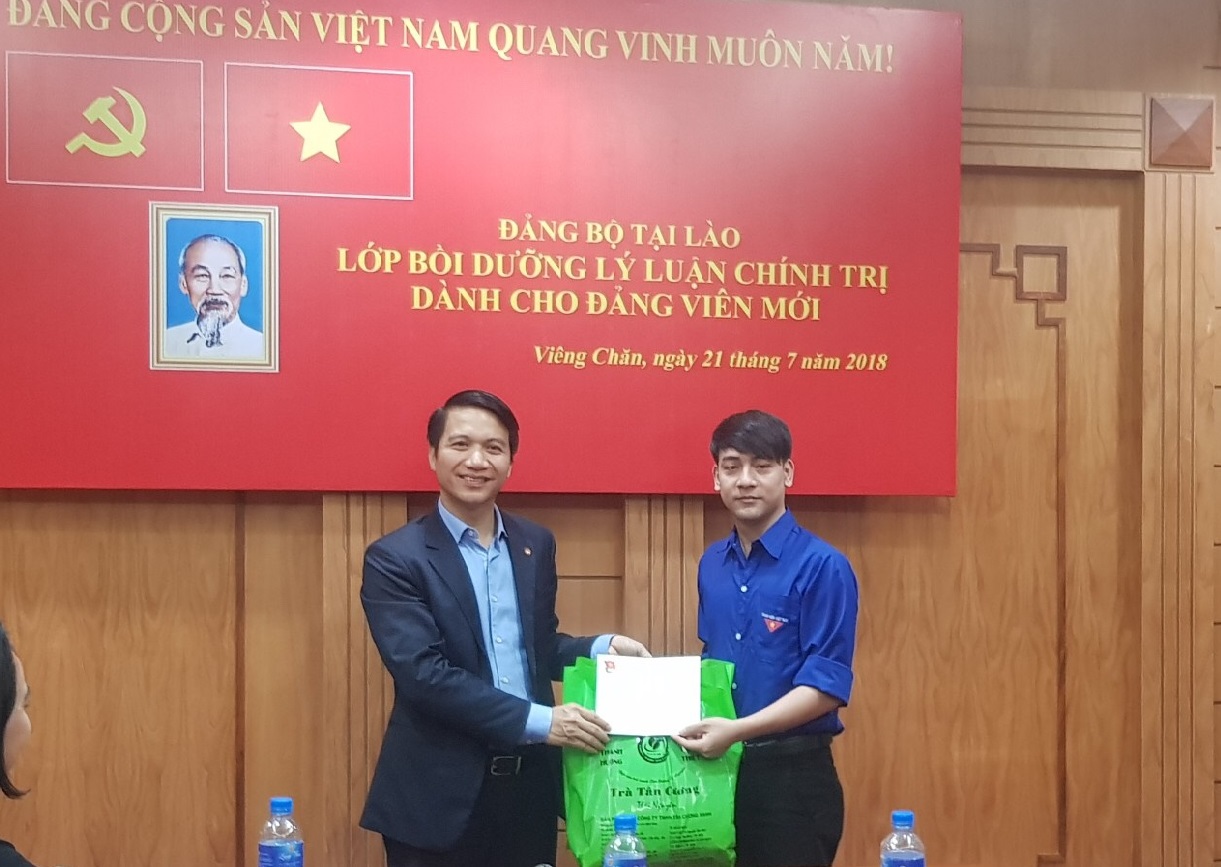 Bí thư Trung ương Đoàn Nguyễn Ngọc Lương tặng quà cho Đoàn thanh niên Đại sứ quán Lào |