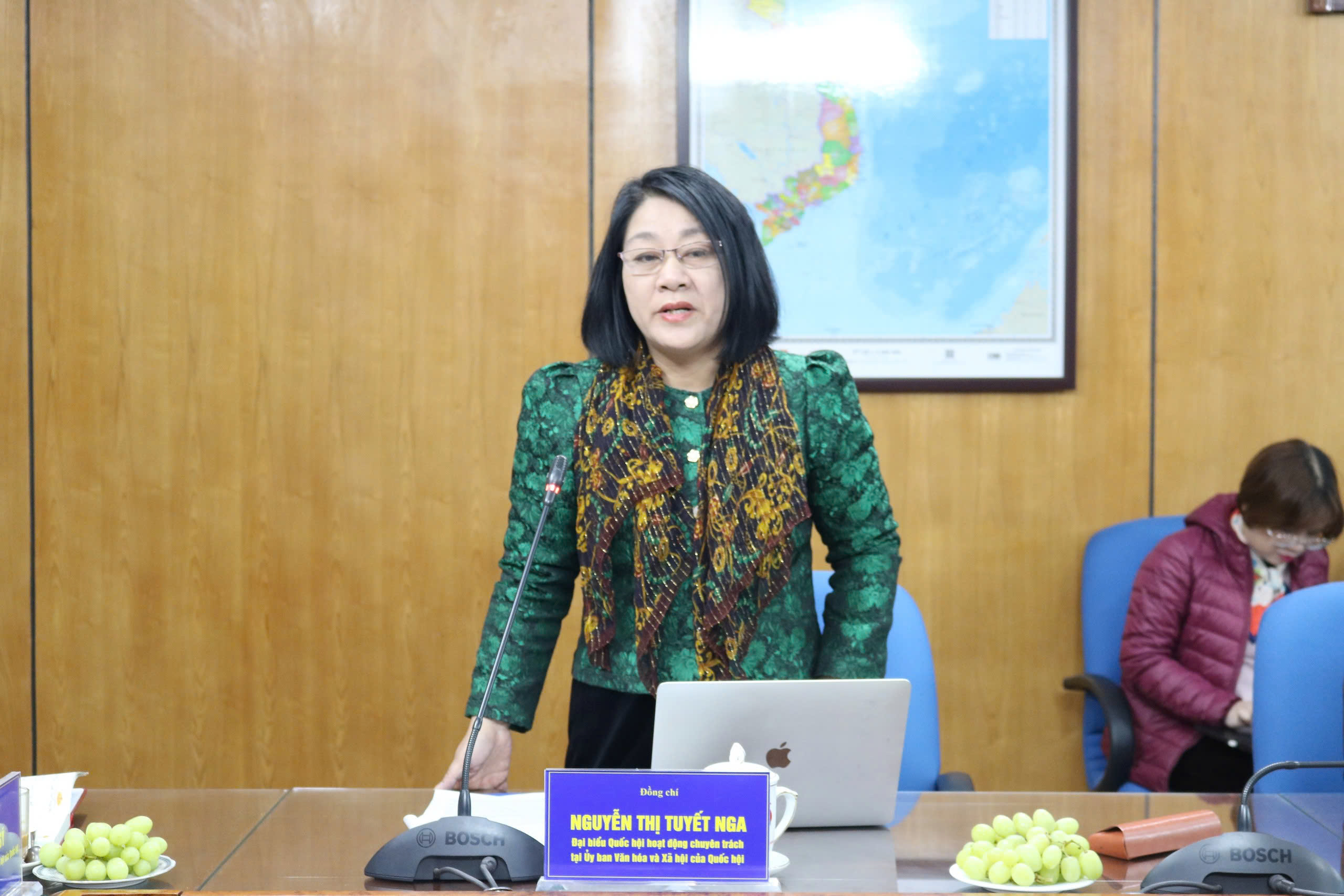Đồng chí Nguyễn Thị Tuyết Nga, Đại biểu Quốc hội hoạt động chuyên trách tại Ủy ban Văn hóa và Xã hội của Quốc hội phát biểu tại chương trình