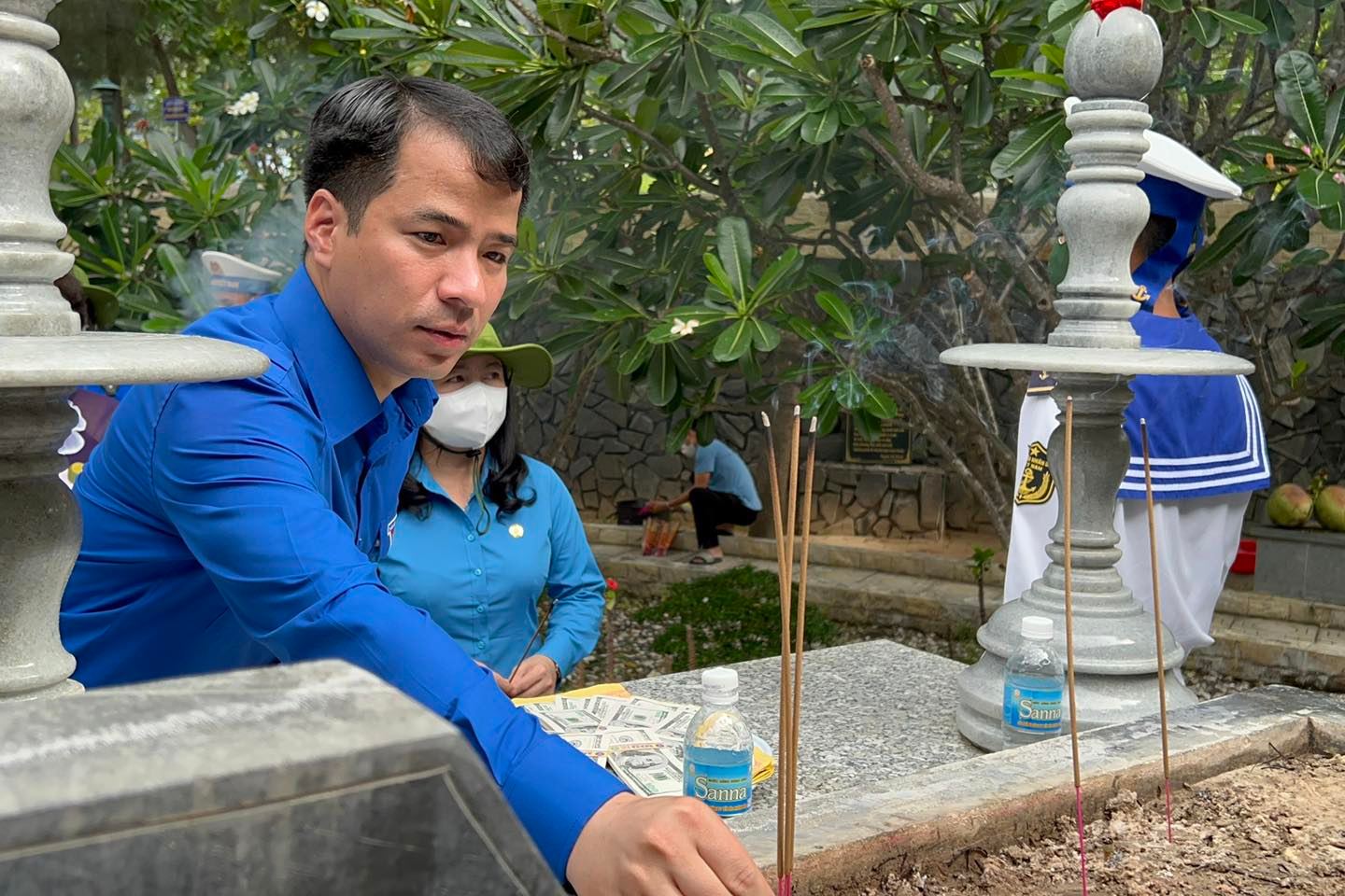 Tại Tượng đài chiến sĩ Gạc Ma, đoàn công tác đã thành kính thắp nén tâm nhang tưởng nhớ các chiến sĩ Gạc Ma hy sinh tại vùng biển Trường Sa.