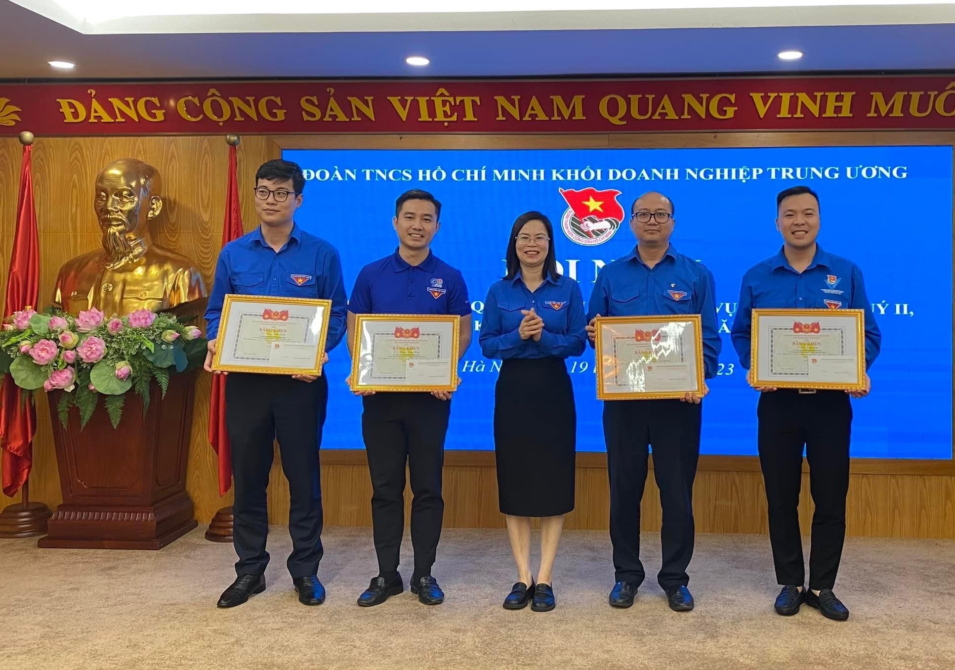 Đồng chí Hoàng Thị Minh Thu, Bí thư Đoàn Khối Doanh nghiệp T.Ư tặng Bằng khen cho các cá nhân có thành tích xuất sắc trong Tháng Thanh niên