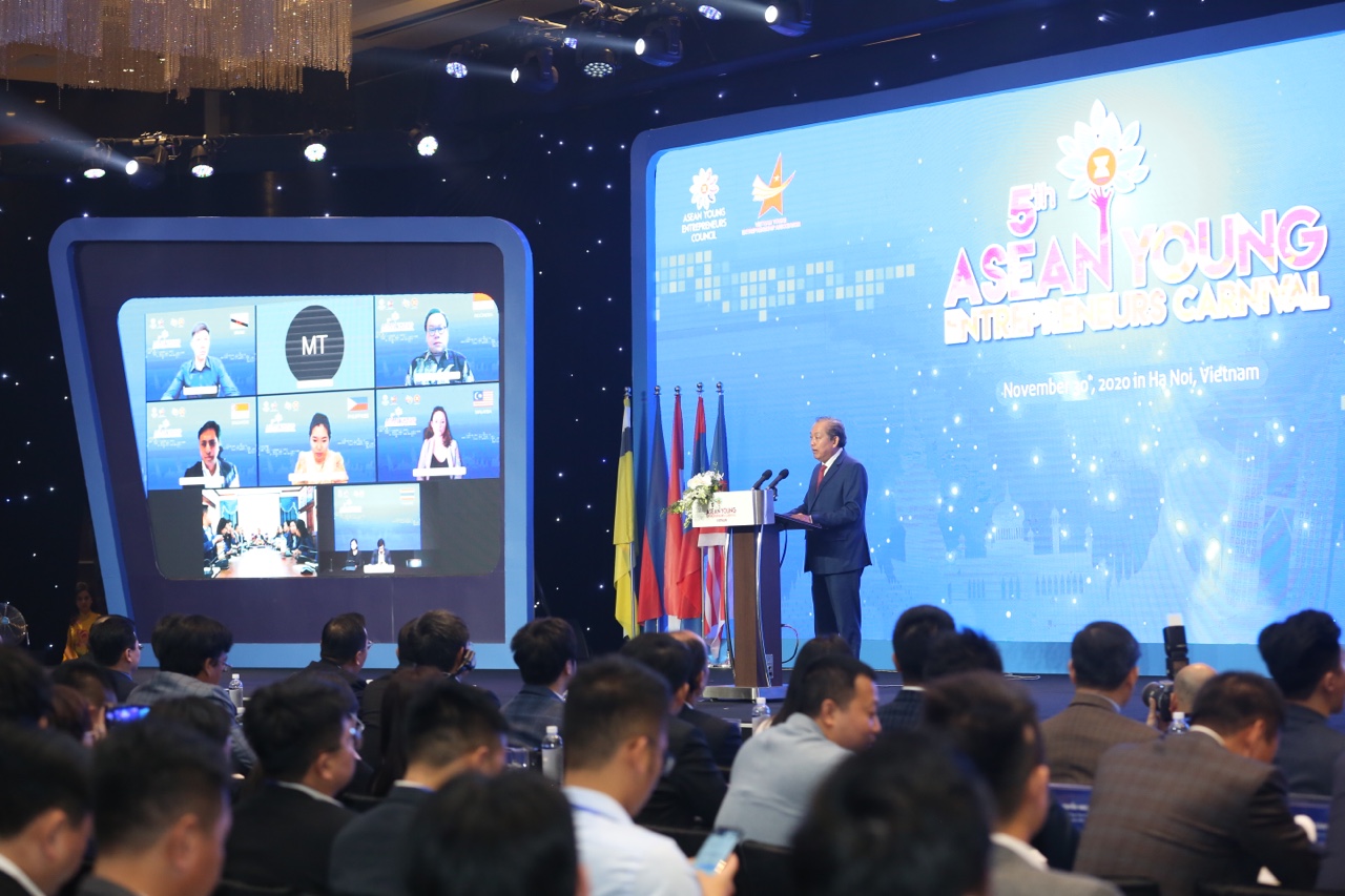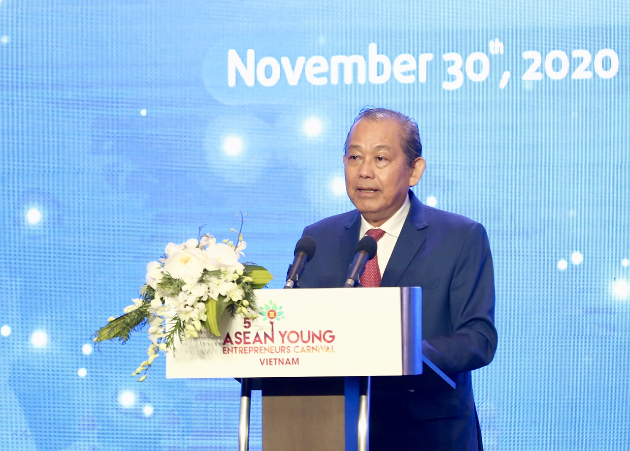 Phát biểu tại Diễn đàn, thay mặt Chính phủ Việt Nam, Phó Thủ tướng Thường trực Chính phủ Trương Hòa Bình nồng nhiệt chào mừng các bạn doanh nhân trẻ ASEAN và đại biểu tham dự Carnival Doanh nhân trẻ ASEAN 2020; đồng thời khẳng định: Diễn đàn là minh chứng cho sự chủ động thích ứng, thích nghi với trạng thái "bình thường mới" của thế giới và khu vực, góp phần thực hiện vai trò kép của ASEAN trong việc vừa bảo đảm đà xây dựng Cộng đồng, vừa ứng phó với đại dịch Covid-19 và hướng tới phục hồi bền vững.