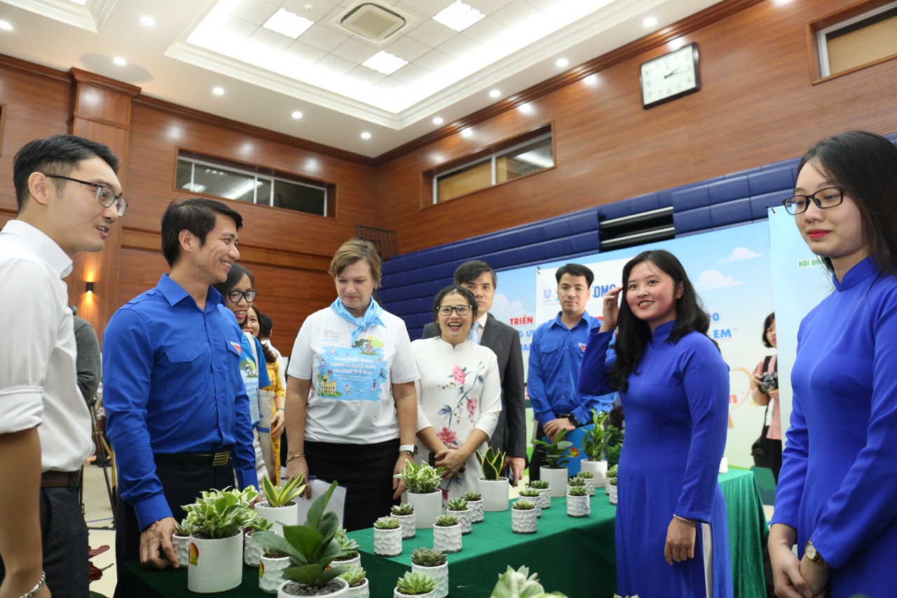 Đại biểu tham quan vật dụng từ các sản phẩm tái chế