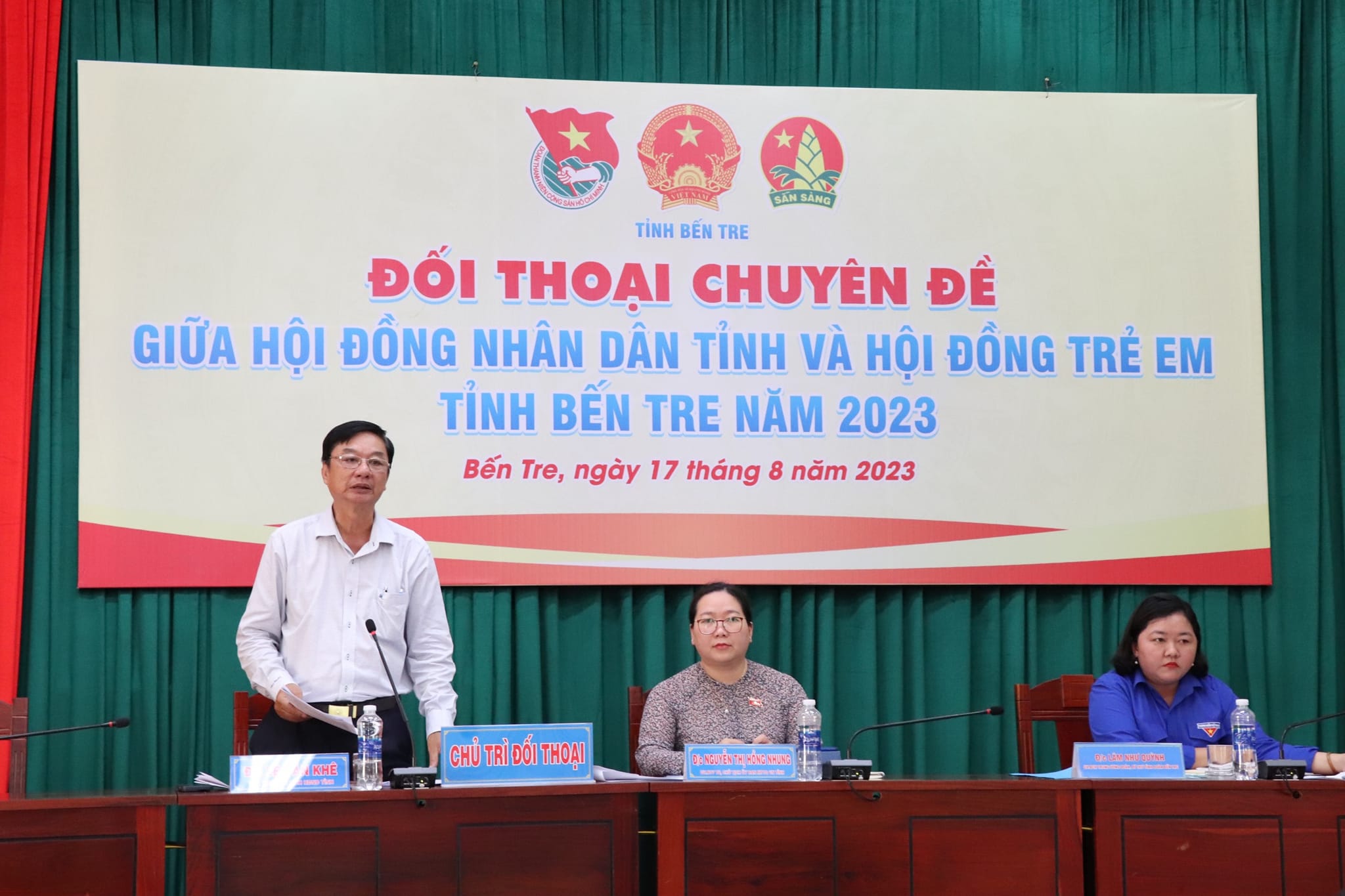 Tham dự có Thường trực Hội đồng nhân dân tỉnh, lãnh đạo các Ban, Văn phòng Hội đồng Nhân dân tỉnh; đại diện lãnh đạo các Sở, Ban, Ngành tỉnh; Ban Thường vụ Tỉnh đoàn, Ban Giám đốc Trung tâm hoạt động Thanh thiếu nhi tỉnh; đại diện Hội đồng Đội các huyện, thành phố và 51 em là thành viên Hội đồng trẻ em, đại diện các Liên đội đến từ thành phố Bến Tre. Đồng chí Nguyễn Thị Hồng Nhung - UV.BTV Tỉnh ủy, Chủ tịch Ủy ban MTTQ Việt Nam tỉnh, đồng chí Lê Văn Khê - TUV, Phó Chủ tịch Hội đồng Nhân dân tỉnh, đồng chí Lâm Như Quỳnh – UV.BCH TWĐ, Bí thư Tỉnh đoàn chủ trì đối thoại.