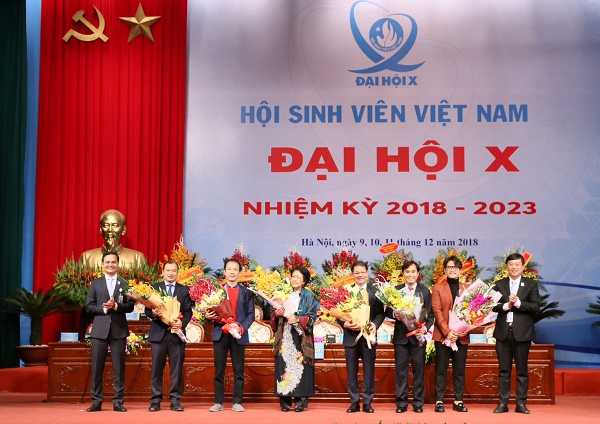 Phó Thủ tướng Vũ Đức Đam và Bí thư thứ nhất Trung ương Đoàn Lê Quốc Phong tặng hoa Ban Chấp hành Trung ương Hội Sinh viên Việt Nam khoá X, nhiệm kỳ 2018 - 2023 ra mắt Đại hội |