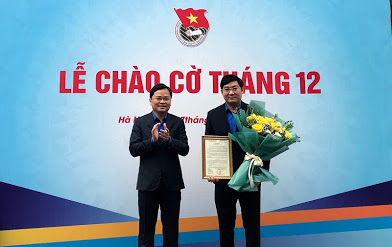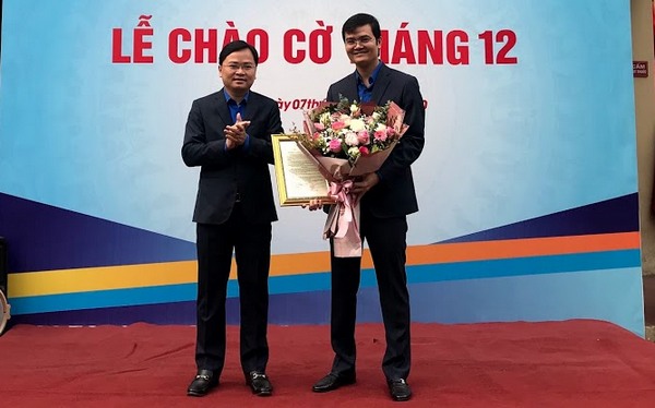 Đồng chí Nguyễn Anh Tuấn, Bí thư thứ nhất Trung ương Đoàn trao quyết định Trưởng Ban Kiểm tra cho đồng chí Bùi Minh Tuấn