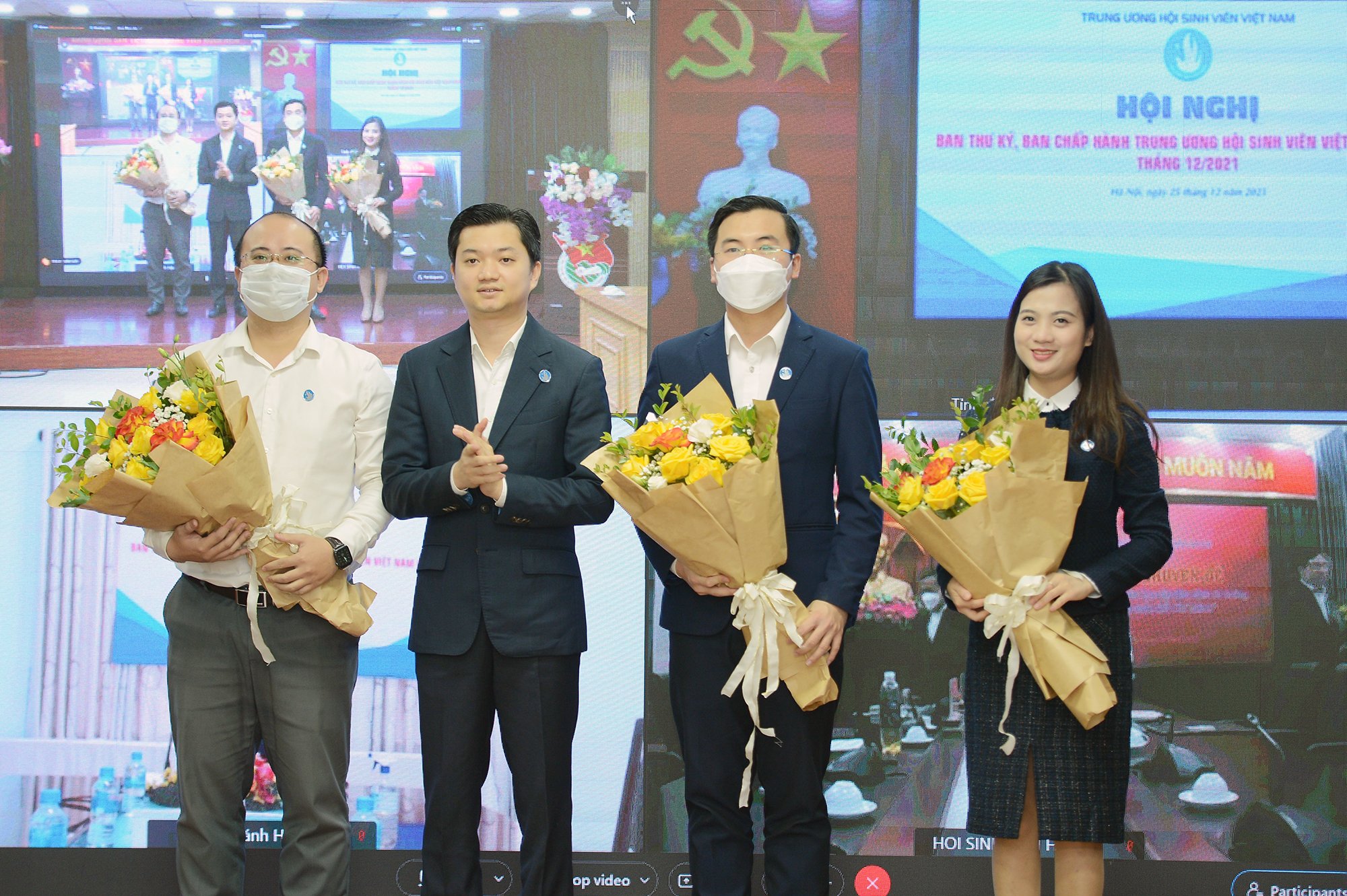 Thường trực TƯ Hội sinh viên Việt Nam tặng hoa chúc mừng Tân Phó Chủ tịch Hội Sinh viên Việt Nam Nguyễn Nhất Linh cùng các đồng chí tân Ủy viên BCH, Ban Thư ký Hội sinh viên Việt Nam