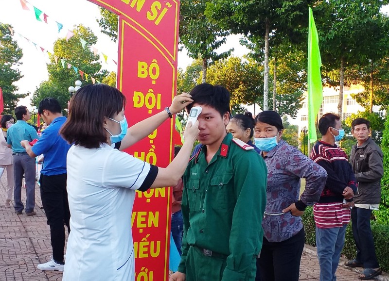 Để đảm bảo an toàn, sức khỏe cho mọi người, tại các điểm tổ chức giao, nhận quân năm nay đều được lực lượng y tế tổ chức phun xịt, khử trùng từ trước đó. 100% thanh niên lên đường nhập ngũ, thân nhân và những người tham gia đều được các cán bộ y tế kiểm tra đo thân nhiệt trước khi vào khu vực giao nhận quân.