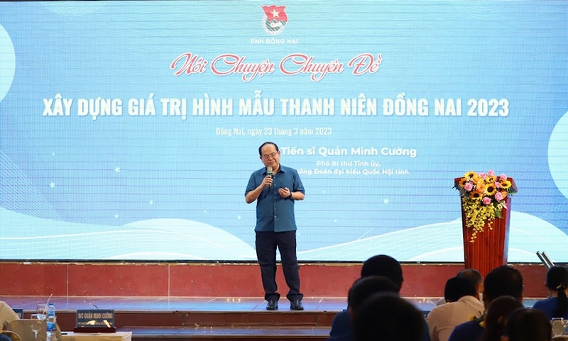 Đồng chí Quản Minh Cường - Phó Bí thư Tỉnh ủy, Trưởng đoàn đại biểu Quốc hội tỉnh chia sẻ chuyên đề về xây dựng giá trị hình mẫu thanh niên Đồng Nai năm 2023