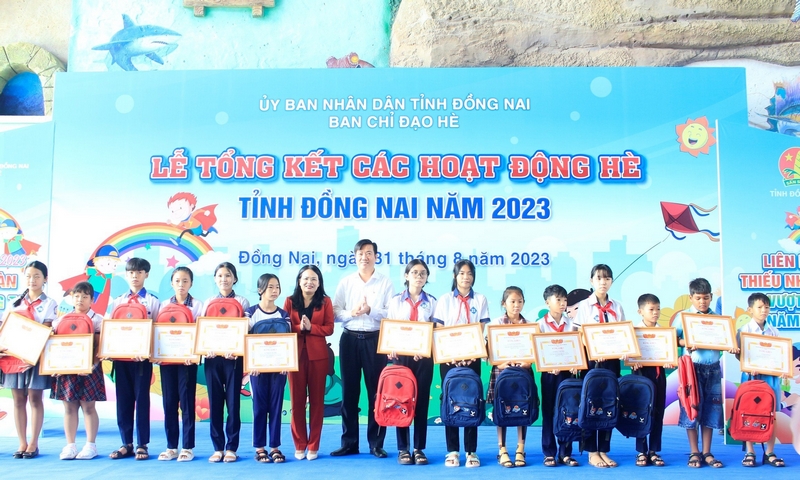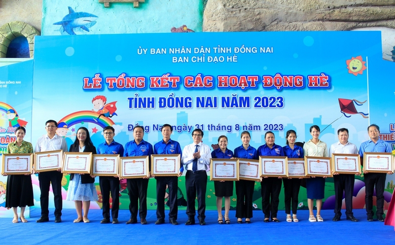 Đồng chí Nguyễn Sơn Hùng - Phó Chủ tịch Ủy ban nhân dân tỉnh, Trưởng ban BCĐ hè tỉnh Đồng Nai trao bằng khen cho các tập thể có thành tích xuất sắc trong triển khai các hoạt động hè năm 2023