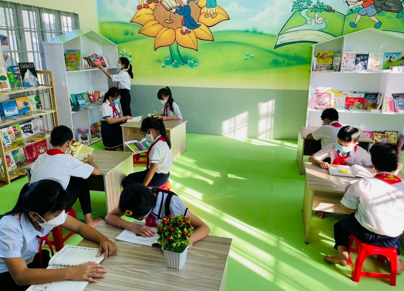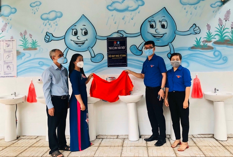 Trong đó, 03 công trình “Thư viện thân thiện” được trang trí không gian phù hợp với học sinh, được sơn sửa phòng học, trang bị thảm, bàn, 2.154 đầu sách, bảng vinh danh “Gương Người tốt - Việc tốt”, bảng lịch sử Đội TNTP Hồ Chí Minh và các trang thiết bị vật tư khác. Đối với 02 công trình “Nhà vệ sinh thân thiện” đã được sửa chữa, thay hệ thống thoát nước, sơn sửa, thay mới các vật tư phù hợp đối với các em học sinh.
