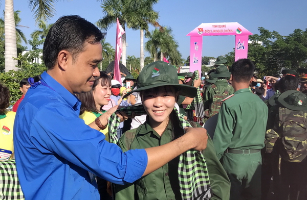 Lãnh đạo tỉnh đoàn tặng quà cho chiến sĩ |