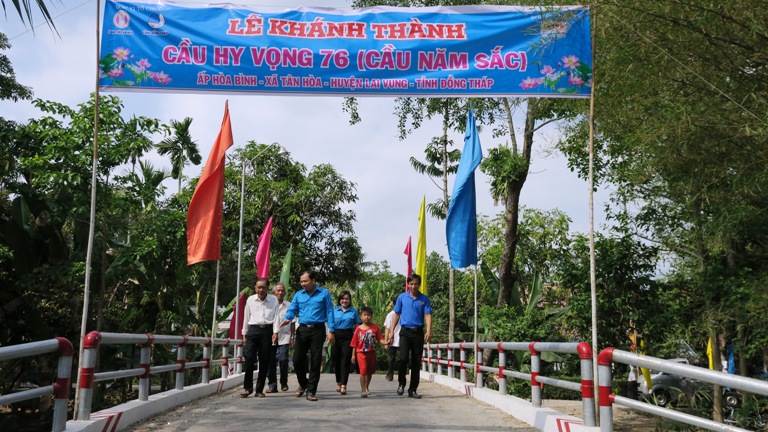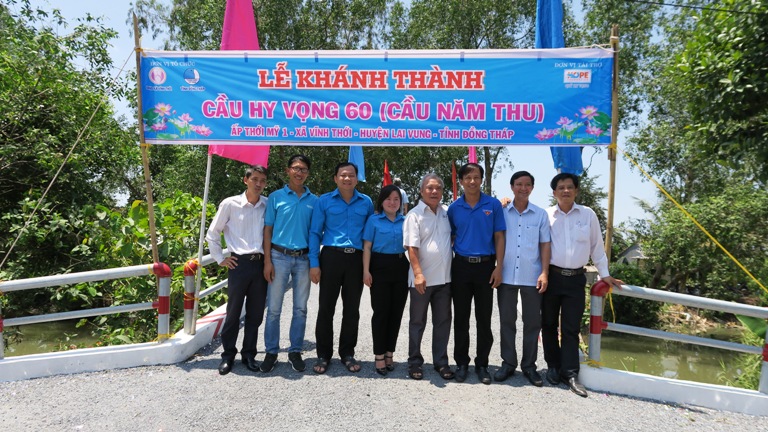 Được biết, trong 3 tháng đầu năm 2020, Tỉnh đoàn, Ủy ban Hội LHTN Việt Nam tỉnh Đồng Tháp đã phối hợp Quỹ Hy vọng xây dựng 19 cây cầu với tổng kinh phí xây dựng khoảng 6,3 tỷ đồng theo hình thức xã hội hóa để xóa cầu tạm, giảm cầu ván, cầu sắt đã xuống cấp và tăng cầu xây trên địa bàn tỉnh theo chuẩn Nông thôn mới ở địa bàn các huyện Châu Thành, Lai Vung, Lấp Vò và Thanh Bình. Trong đó đã có 09 cây cầu đã được khánh thành và đưa vào sử dụng.