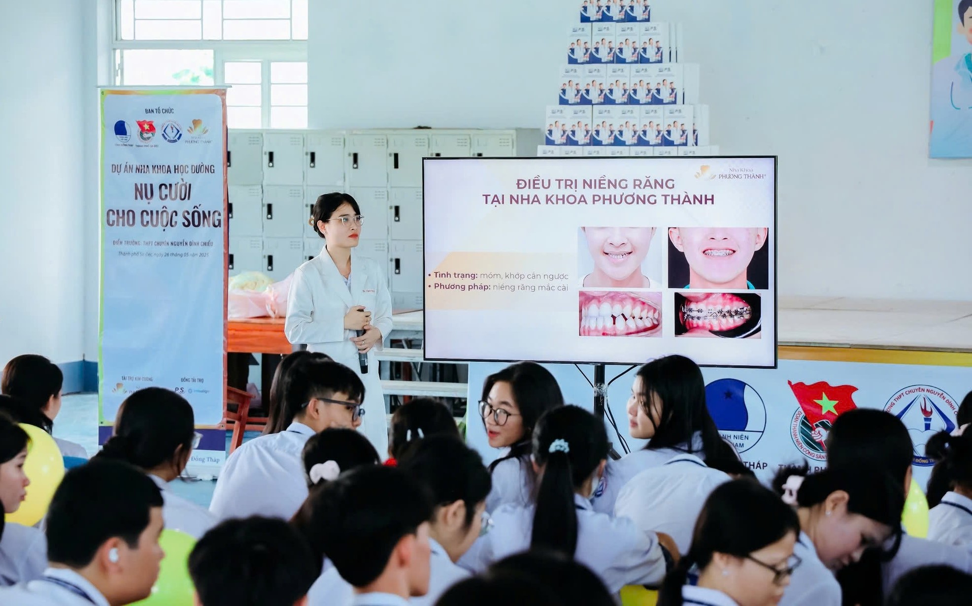 Tại chương trình, các em học sinh khối lớp 10 của Trường THPT chuyên Nguyễn Đình Chiểu đã có một buổi trải nghiệm đầy ý nghĩa và bổ ích với nhiều hoạt động phong phú, thiết thực. Các em đã được trực tiếp lắng nghe những chia sẻ, tư vấn từ đội ngũ bác sĩ chuyên môn cao, giàu kinh nghiệm về cách chăm sóc và bảo vệ răng miệng đúng cách, giúp nâng cao ý thức chăm sóc sức khỏe ngay từ lứa tuổi học sinh.