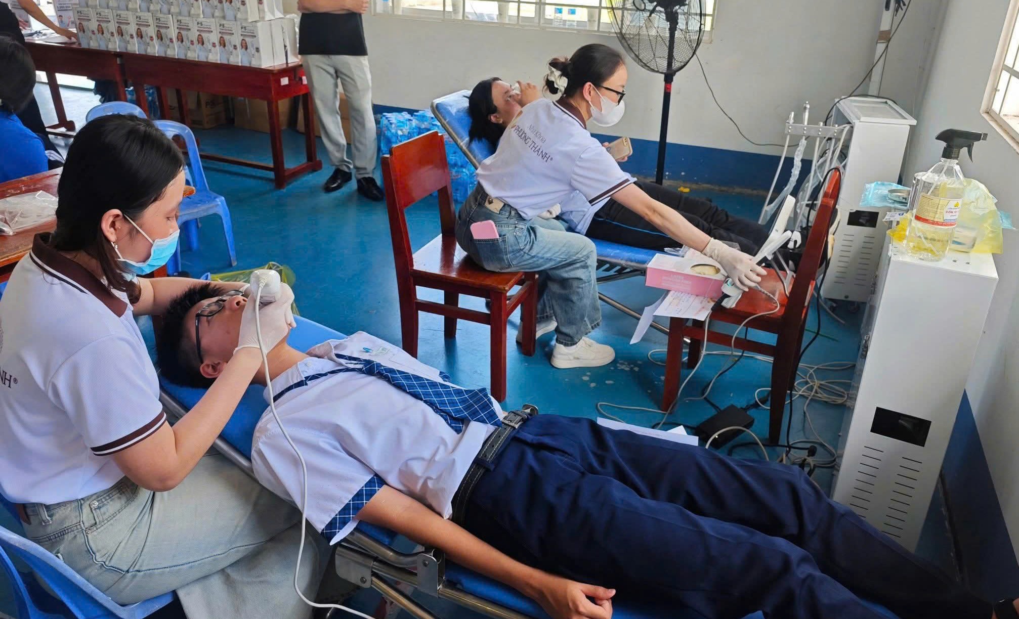 Không chỉ được trang bị kiến thức, các em còn hào hứng tham gia vào chuỗi hoạt động trải nghiệm thực tế sôi nổi như các trò chơi giao lưu, hỏi đáp có thưởng, đòi hỏi sự nhanh nhạy và hiểu biết, mang đến không khí vui tươi, gắn kết tập thể. Một điểm nhấn nổi bật của chương trình là hoạt động khám răng miễn phí, được thực hiện trên hệ thống máy móc hiện đại, đạt chuẩn quốc tế, đảm bảo quy trình chuyên nghiệp và an toàn tối đa cho học sinh.