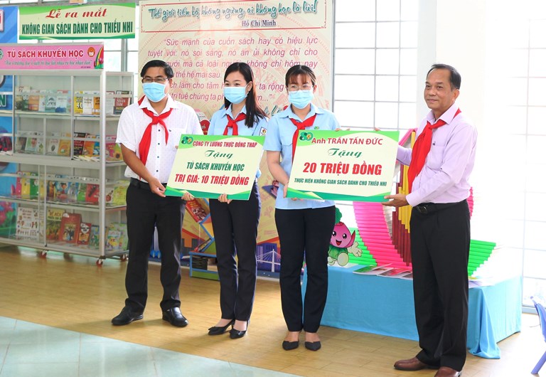 Tại chương trình ông Trần Tấn Đức – Phó tổng giám đốc Cty lương thực miền Nam/nguyên là đội viên tiêu biểu (giai đoạn 1975-1980) và đại diện Công ty lương thực Đồng Tháp đã trao tặng bảng tượng trưng thực hiện không gian Sách” trị giá 20 triệu đồng và “Tủ sách khuyến học” trị giá 10 triệu đồng.