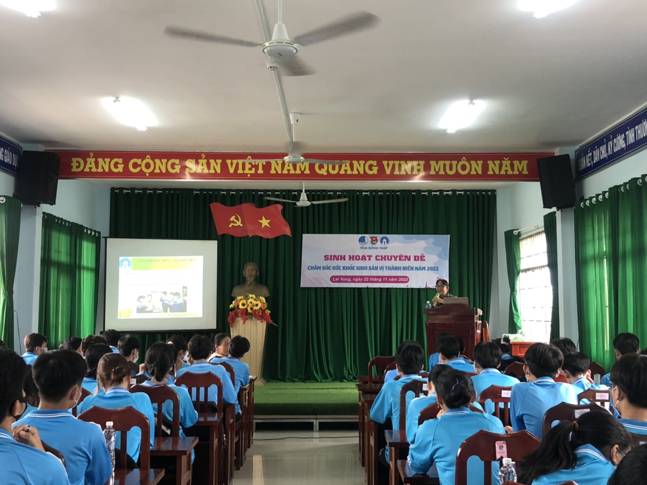 Đến tham dự sinh hoạt chuyên đề có đồng chí Nguyễn Thị Ngọc Thảo - UVBTV Tỉnh đoàn, Trưởng Ban Tuyên giáo, Ủy viên Ban Thư ký Hội LHTN Việt Nam Tỉnh; ThS. Nguyễn Minh Tương chi cục Trưởng Chi cục Dân số - Kế hoạch hóa gia đình tỉnh Đồng Tháp; cô giáo Nguyễn Thị Thanh Khiết - Phó Hiệu trưởng Trường THPT Lai Vung 2...