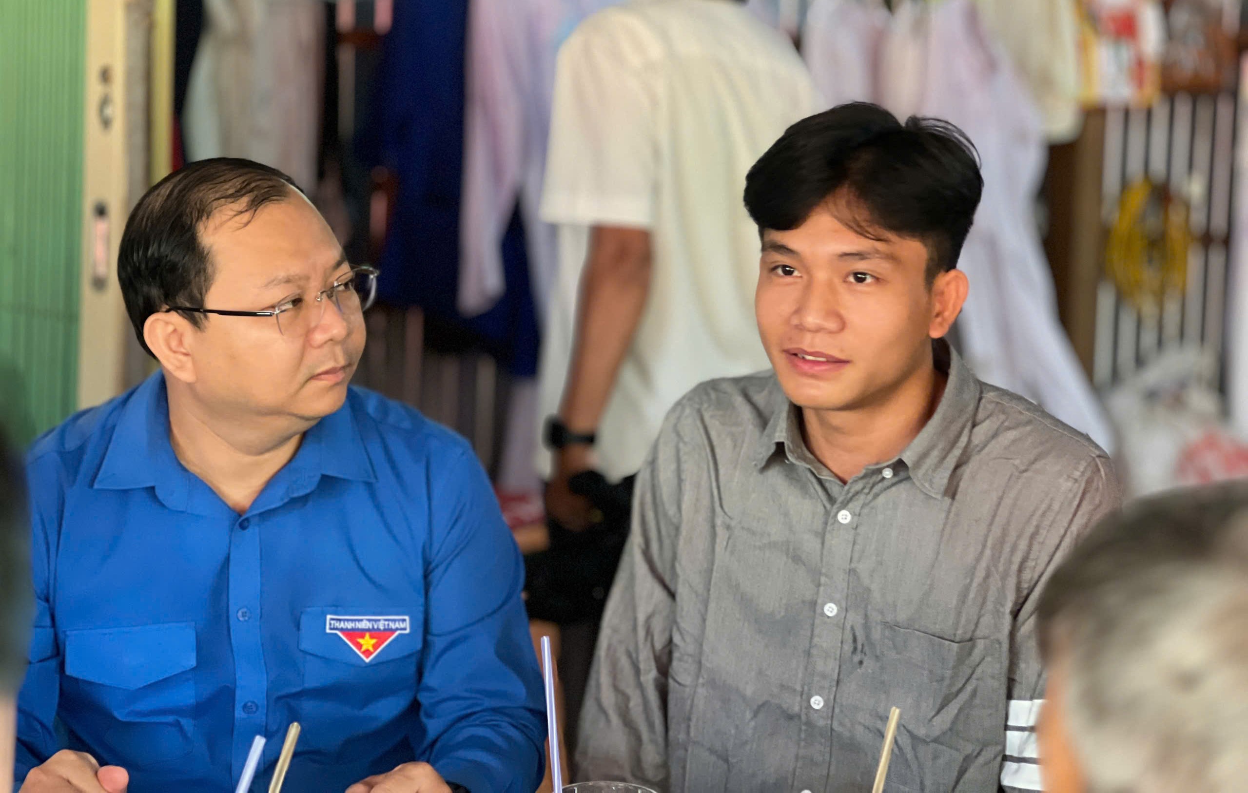 Bí thư Tỉnh đoàn Đồng Tháp lắng nghe bạn Dương Tấn Đạt, chàng trai đầy nghị lực, bản lĩnh vượt qua khó khăn, sẵn sàng tham gia nghĩa vụ quân sự