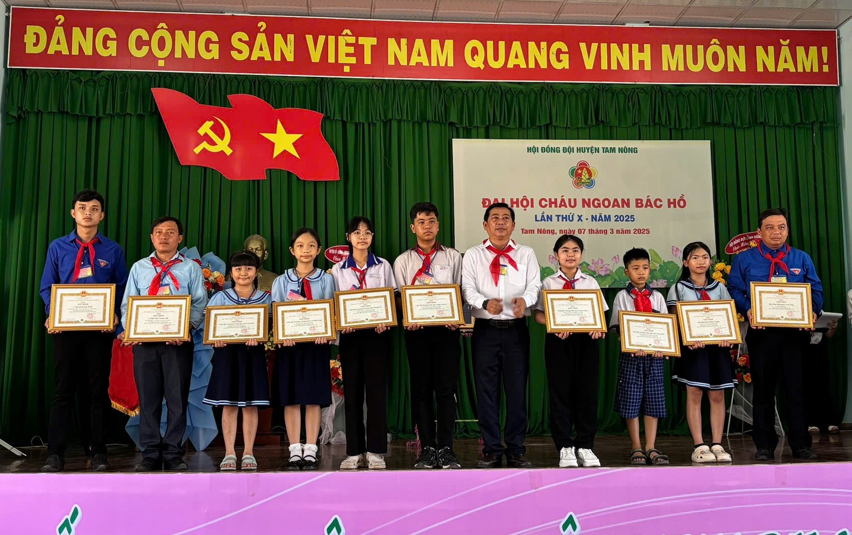 Các tập thể, cá nhân có thành tích xuất sắc nhận giấy khen của UBND huyện tại Đại hội Cháu ngoan Bác Hồ huyện Tam Nông năm 2025