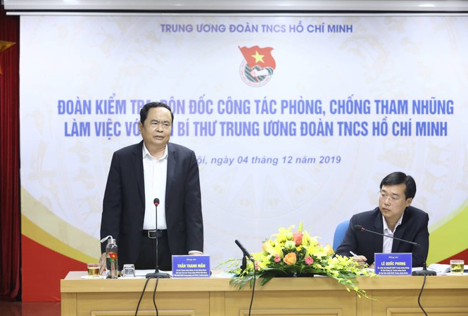 Phát biểu tại buổi làm việc, Chủ tịch Ủy ban T.Ư MTTQ Việt Nam Trần Thanh Mẫn ghi nhận, đánh giá cao những công việc T.Ư Đoàn đã làm được trong công tác phòng, chống tham nhũng, lãng phí thời gian qua. Ông đánh giá cao vai trò tiên phong, gương mẫu của cán bộ lãnh đạo, người đứng đầu các cấp tổ chức Đoàn trong việc thực hiện “cần, kiệm, liêm, chính” được phát huy; trong hệ thống tổ chức đoàn, các đơn vị trực thuộc T.Ư Đoàn chưa phát hiện trường hợp nào vi phạm về tham nhũng.